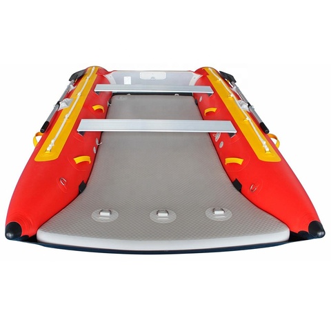 Catamarán inflable de alta presión-CE aprobado, barco de pesca estable de PVC de 1,2mm con suelo de aluminio y soportes para cañas